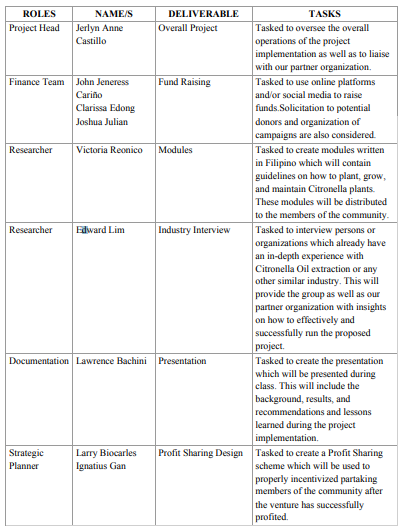 To kickstart our group, we had volunteered or assigned roles to be able to do our project. The following is the role chart of our group.